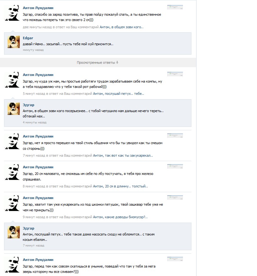шибонка ты чмошник, шапитошник куев, ссыкливая телочка, анальный раб моего куя..охохохохохох.. ахахахаха