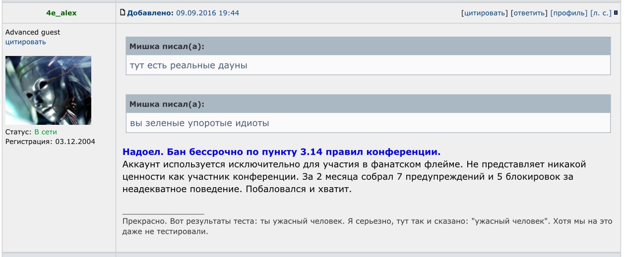 Мишка писал(а):Тут обсуждение тут два лагеря люди будут приводить кучу фактов, тут есть реальные дауны.