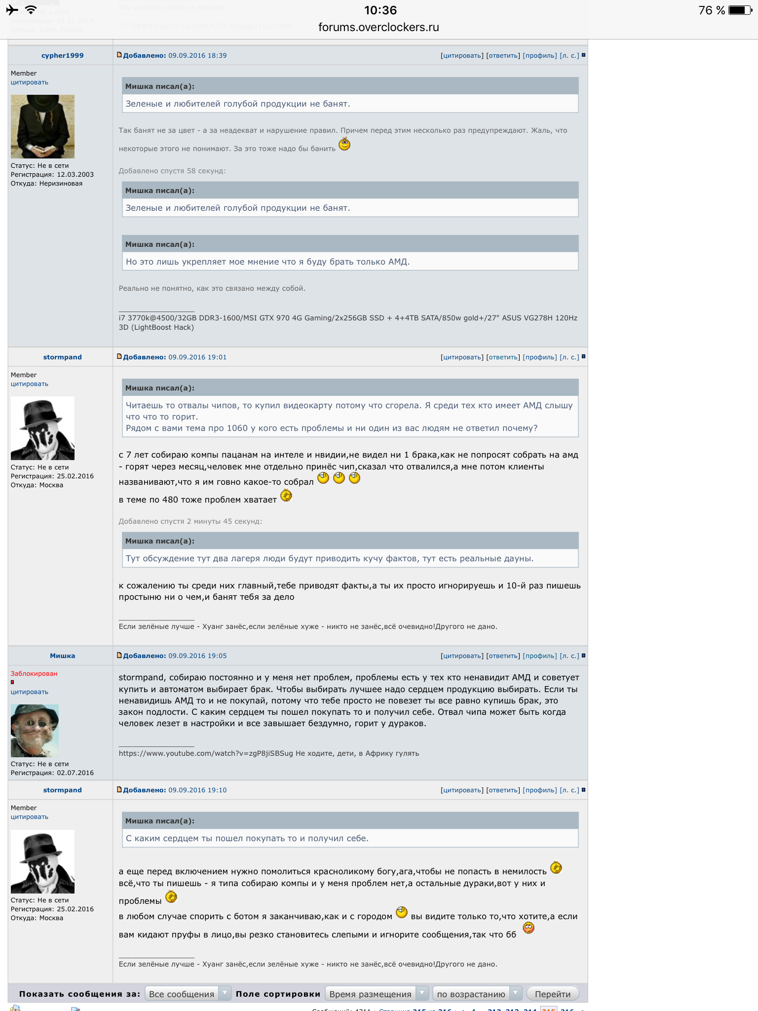 Авторы этого сайта ни разу не удосужились показать железо. Давно понятно что пора создать альтернативу этого сайта. НА этом сайте за любое слово растрел. Такого нет на информационных сайтах когда люди политику обсуждают. На ваш сайт давно пора в суд подать, за то что вы пользователей слова лишаете баните.