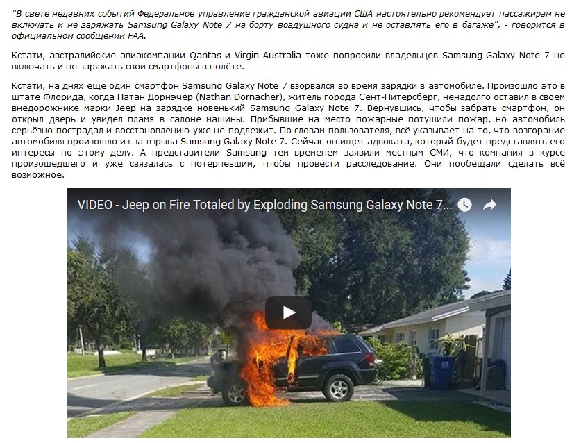 Кадры где горит новенький Чероки показали на весь мир..общество потреблядей может простить все..любую вещь...кроме своей безопасности.. Самсунг бренд первого эшелона..который брал 300процентов накрутки за пластиковый мусор.. брал за безопасность..и не обеспечил ее..