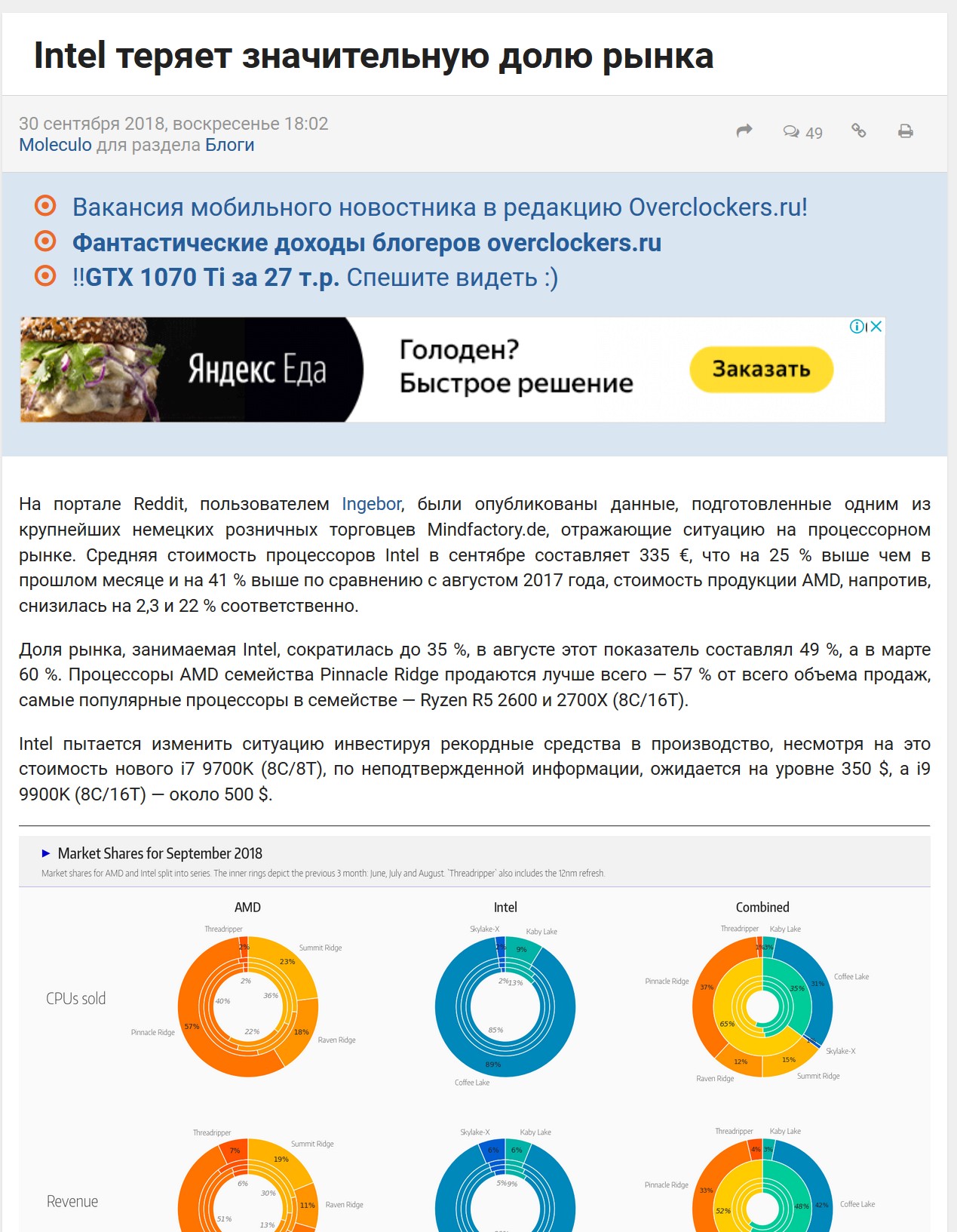 Сейчас рынок так реагирует..потому что идет планомерный..резкий апгрейд десктопов по всему миру.. при этом 20 процентов покупает себе компы на али и авито за 25 тысяч..полностью всю сборку на базах ксеонов с анлок множителем и 2600к..которые в разгоне быстрее амд.. и дешевле.. намного дешевле интела.. 30 процентов ушли на амд и выбрали новое железо..это полное нубье и дилетанты..остальные тоже полное нубье и дилетанты ..но упорото покупающие интел.. отсюда спрос на интел.и цены уровня неадекват..