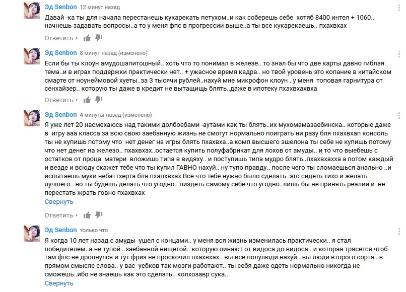Эд Senbon Завали, ебало, ты сейчас говоришь, что видеоблогер выёбывается, а на самом деле выёбываешься ты.