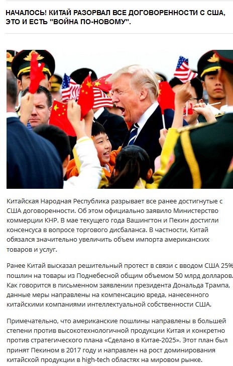США уже проиграли торговую войну.. заочно.. ибо не конкурентный товар..по невменяемым ценам..не нужен ни одному из развивающихся рынков.. а именно такие рынки китая и индии и позволяют заработать в реалиях финансовых коллапсов..