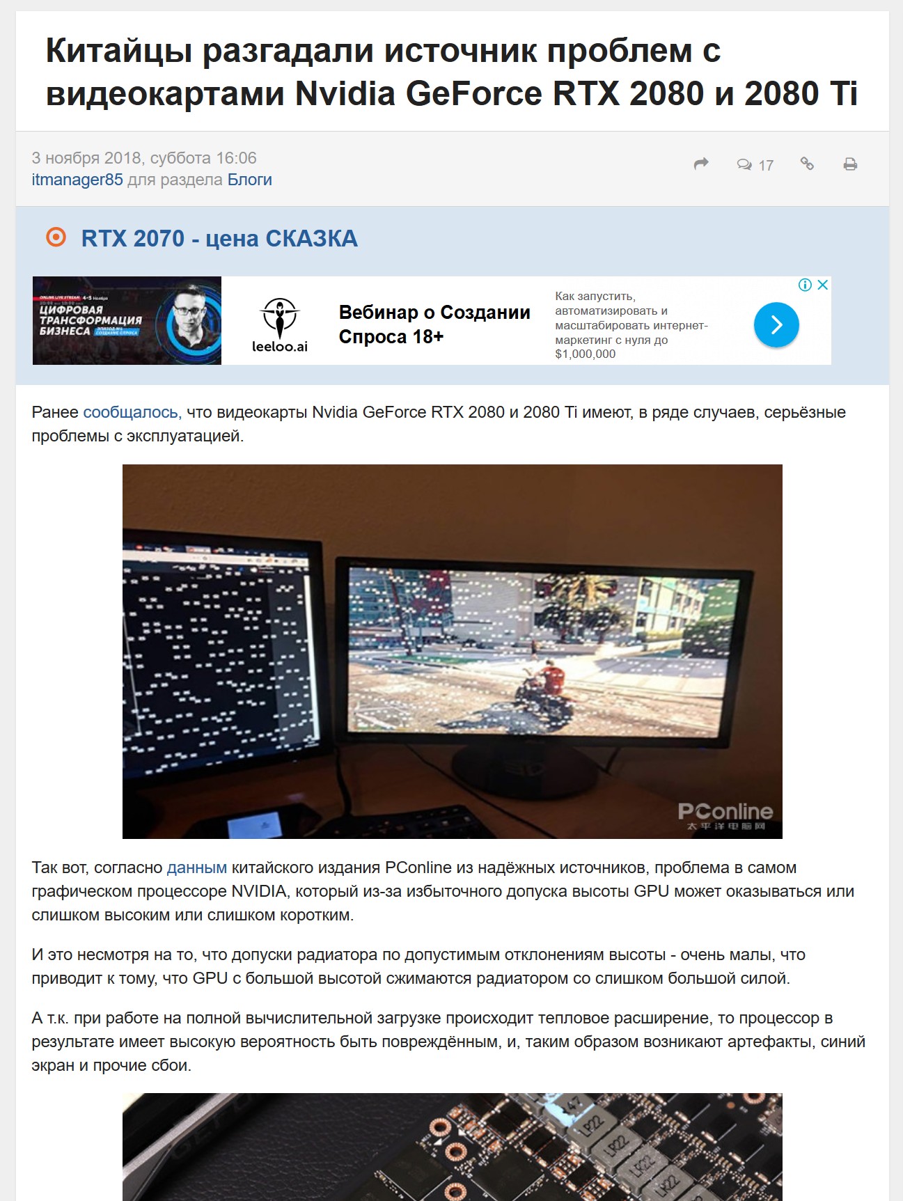 Ну че..ошибка проектирования..память греется до 85 в стоке и банально деградирует..виновата целиком нвидиа..которая не тестила карты вообще.. слив и зашквар защитан..
