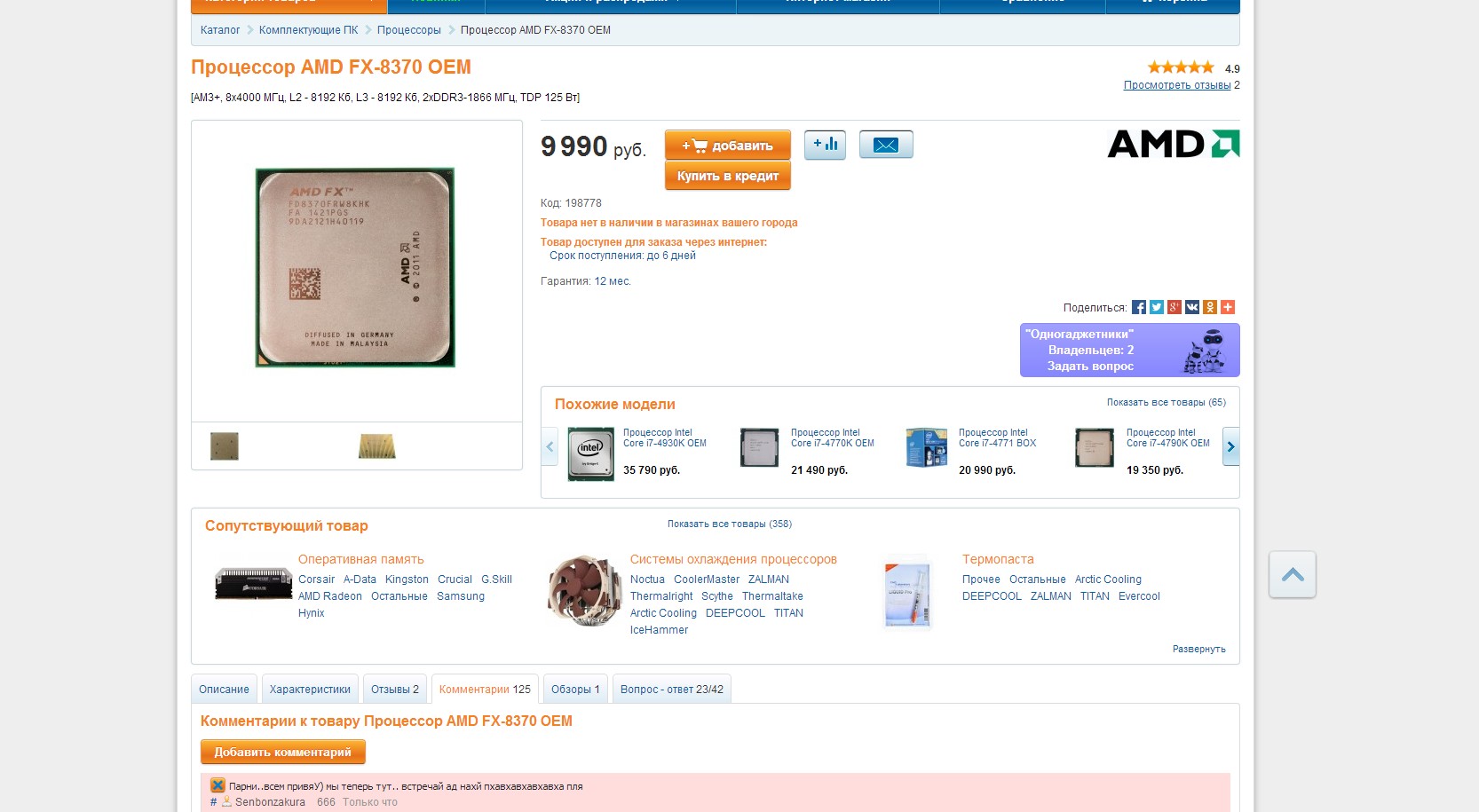Процессор AMD "FX-8320" (3.50ГГц, 4x2048КБ+8МБ, HT2600МГц) SocketAM3+ (oem)