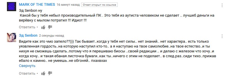 Все видосы этого видеоблогера блять..основаны на превосходстве его ..над оппонентом.. то он вызывает лохотронщика из сервиса компов домой..и показывает какой он умный блять.. то разьебывает дурака-продавашку.. а я вот он.. Маг и Волшебник железа.. знающий и делающий что угодно с чем угодно.. и я говорю он ничего не знает в железе.. и я это докажу за 5 минут нахуй.. вот и вся суть.. вся твоя бравада просто дичь ебаная..