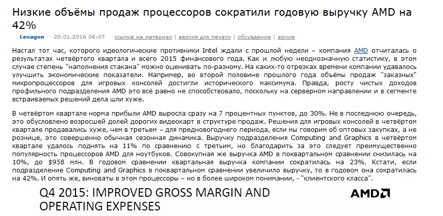 Воткнул недавно радик R9 270X, чисто посмотреть, до чего дошел прогресс. Каталист контрол центр как работал через задний проход, так и работает (больных программеров, использующих всякие фреймворки нужно кастрировать). В Сталкере как не было заборов, так и нет. Ну ладно, пес с ним, так вроде все бегает, ну думаю ниче так. Но нет, запускаю банально онлайн-ТВ - тьфу, все искажено и все дергается. И это с последними драйверами. Втыкаю назад гефорс - все в порядке. Не, я понимаю конечно, что пошаманить с несколькими разными версиями дров и оно таки заработает, но этим пусть нищеброды-садомазохисты занимаются.