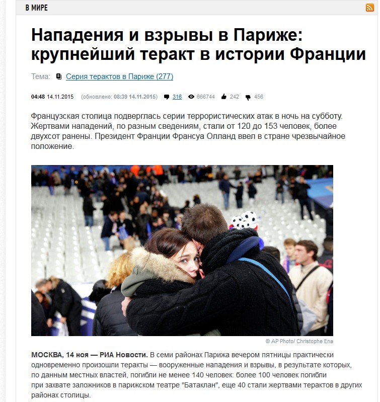 Я говорю о том.. что теперь Игил будет подрывать дома и народ Европы.. и дойдет до крайностей.. как и было предсказано ранее.. их проще убивать.. у них никакая агентура.. и нет ровно никакой защиты от внутренней угрозы террора.. в Сирии они ничего не отхапают.. лягушатник русскому не противник..